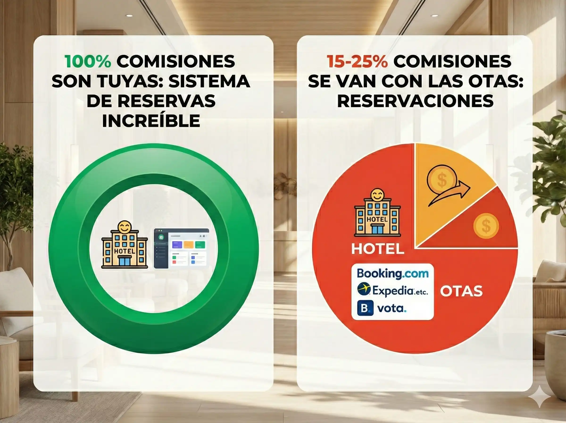 Si tu página web es solo un catálogo digital, estás perdiendo dinero cada día. Los potenciales huéspedes la visitan, ven tus fotos, y luego se van a una OTA para reservar, dejándote con una factura de comisión del 15%, 20% o más.